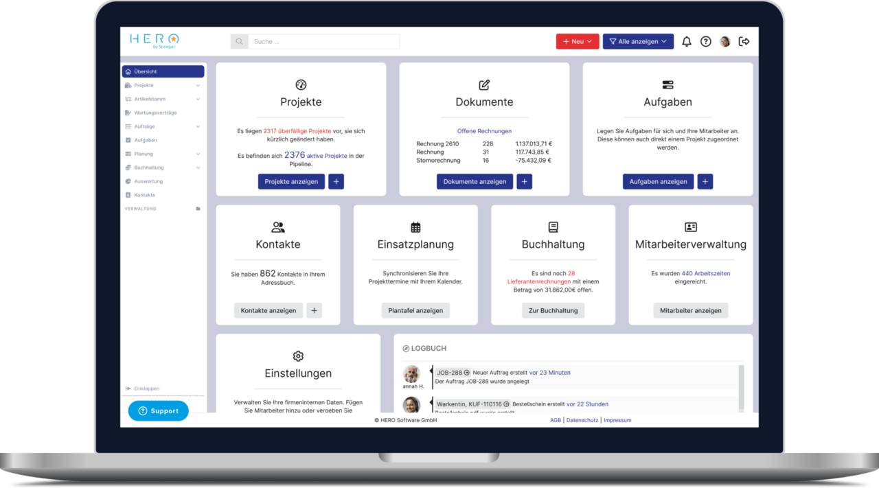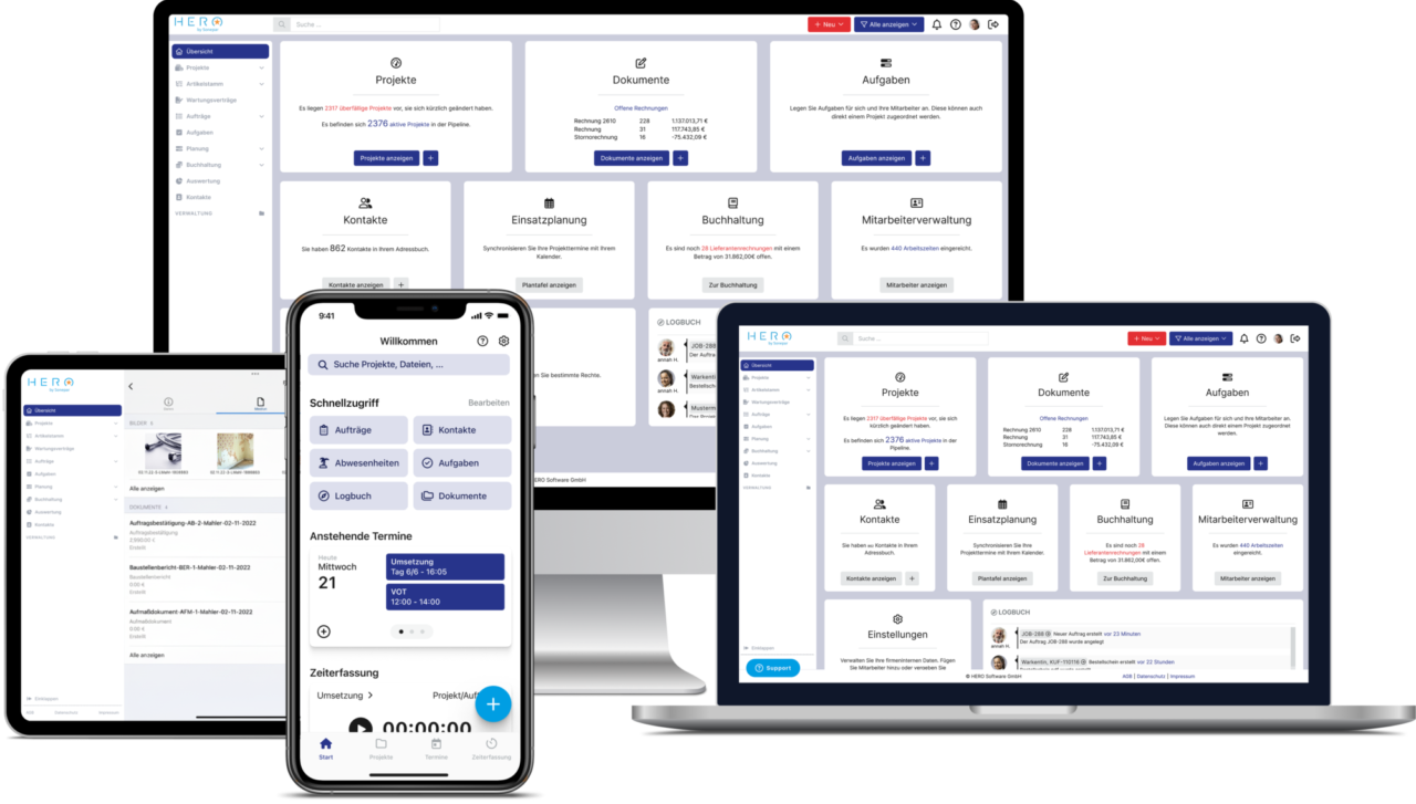 Projekt- und Kundendaten werden geordnet archiviert und sind für alle Beteiligten sofort verfügbar, ob im Büro oder auf der Baustelle. Der Projektverlauf synchronisiert sich dabei automatisch und ermöglicht einen schnellen Überblick über den Arbeitsstand Ihrer Projekte. Digitalisieren Sie mit Sonepar-HERO mit nur einer Software Ihren gesamten Betrieb.